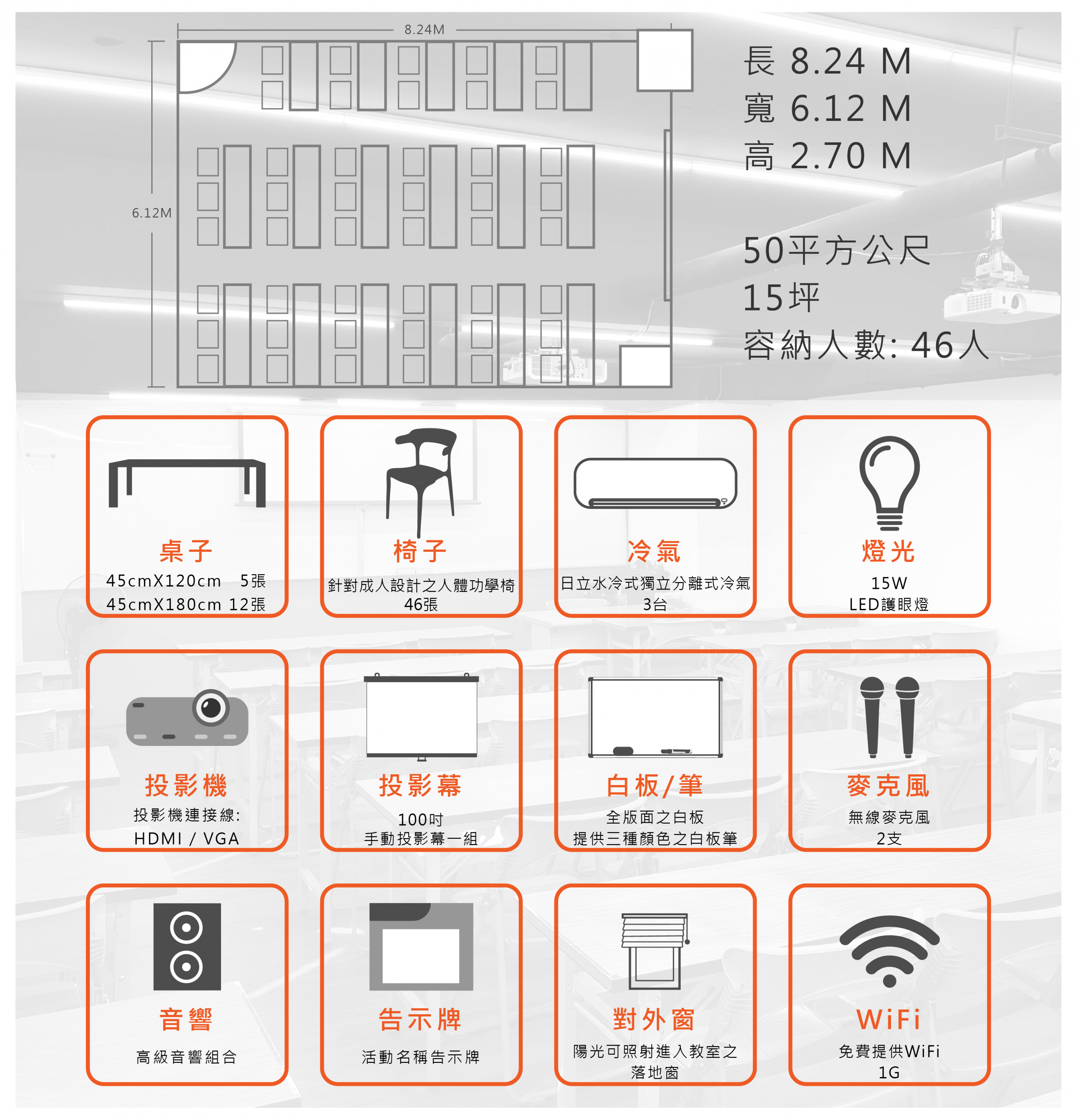 立即預定場地 能量教室 高雄場地租借-能量教室 場地平面圖 租借方式與優惠說明 ▍時段租借 註: 一個時段4小時,時間已含進場場佈及離場時間。 ▍租借費用 註: 1. 早鳥優惠限使用前二天租借付款,前一天及當日租借付款則依原價收費。 2. 完成付款才能預定教室。 3. 會員優惠折扣依原價算折數。 會員優惠方案 : 1.初次租借並加入會員方案,需先支付會員費,當筆訂單即享會員折扣。 2.會員費非儲值金,無法折抵場租費用。 3.會員優惠期限從付款日起算12個月。平日、假日皆可使用,不限次數。 4.可跨區使用(台南中西區中正場地 / 高雄三民區博愛場地) 5.完成繳納會員費用,則不受理會員費退費。 6.如欲加入會員,請與我們聯繫。 LINE ID : @dream-space 清潔費用 本空間不開放飲食(含公共區域) 如進入本空間會食用早/午/晚餐之餐點及蛋糕、點心、餅乾等任何食品,將酌收清潔費用500元。 *白開水、飲料免列入清潔費收費之項目 註 : 1. 租借時請主動告知是否會飲食。 2. 活動結束請協助將圾垃分類至圾垃區並恢復環境整潔。 3. 租借費用若未含清潔費,活動當天有飲食,將依規定加收清潔費用。 空間設備介紹 ▍能量教室 15坪空間,可容納46人 中央空調、EPSON4000流明投影機、YAMAHA高級音響、全版面白板、LED護眼燈管等設備 ▍空間安全 符合政府辦訓規範 隔間材料具備1小時防火能力矽酸鈣板 建築消防安檢合格 ,具公共意外責任險 48,000,000 ▍公共區域 ▍服務提供 適合說明會、研討會、講座、課程、公司內訓、餐會聚餐、攝影拍攝、記者會、音樂表演、靜態展覧等活動。 實際使用狀況 租借須知 ▍注意事項 1.本場地可攜帶飲料入場,若用餐將酌收清潔費,依照每間教室收費標準。 2.活動結束請將垃圾帶走並恢復環境整潔。 3.如有移動桌椅,活動結束前須恢復原狀。 4.本場地之牆面、所有設備及地板不得塗寫、釘、掛、黏貼等行為,若造成毀損,應予以照價賠償。 5.本場地公共區域的桌椅及物品請勿自行移動,如有需求,請洽櫃檯人員。 6.禁止攜帶寵物、吸菸、烹飪開伙、點香/點火/點蠟燭,以及賭博等違法行為。 7.場地超時計算方式: 以一小時為單位! 超時使用三十分鐘內 ~ 一小時,以一小時原價計費; 超時一小時(含)以上 ~ 二小時,以二小時原價計費...依此類推。 8.超過租借教室規範的人數,加一張椅子加收50元。 9.租借優惠價格限使用前二天付款,前一天及當日付款則依原價收費。 10.下訂即代表同意本場地規定,有任何問題歡迎聯繫,謝謝! ▍非營業時間租借 若有時段租借以外的需求,請與我們聯繫! LINE ID : @dream-space 洽詢電話 : 07-3227272 ▍取消規範 1.場地租借完成匯款/刷卡後即為正式合約。 2.下訂後到使用前7天欲辦理取消退費,會扣50%手續費用(付款金額x50%=退款金額), 亦可延後三個月內使用(僅限乙次)。 3.使用前6天不再接受取消或延後。 4.租借當日若遇天然災害,地方政府宣布停班停課,本空間將停止營業。 當日場次可延後使用,或申請退費(因不可抗力因素,不扣手續費用) *停班課範圍不含【高雄市三民區/台南市中西區】當日則正常營業,若取消活動,則不受理退費與延期 5.下訂即代表同意本場地規定,請確認後再下訂,以確保租借雙方權益。 場地行事曆 交通位置 高雄市三民區博愛一路287號9樓-世貿金星大樓 (一樓為高雄銀行,入口大門在綏遠二街) 捷運後驛站4號出口 ●搭乘高鐵-至左營站下車》轉乘捷運紅線》至後驛站》4號出口》步行1分鐘 ●搭乘臺鐵-至高雄火車站》轉乘捷運紅線》至後驛站》4號出口》步行1分鐘 ●搭乘公車-可搭紅28/紅31/301/33至捷運後驛站下車》步行2分鐘 ●搭乘輕軌-至愛河之心站》轉乘捷運凹子底站》至後驛站4號出口》步行1分鐘 ●自行前往-停車資訊請參考下方圖示 立即預定場地